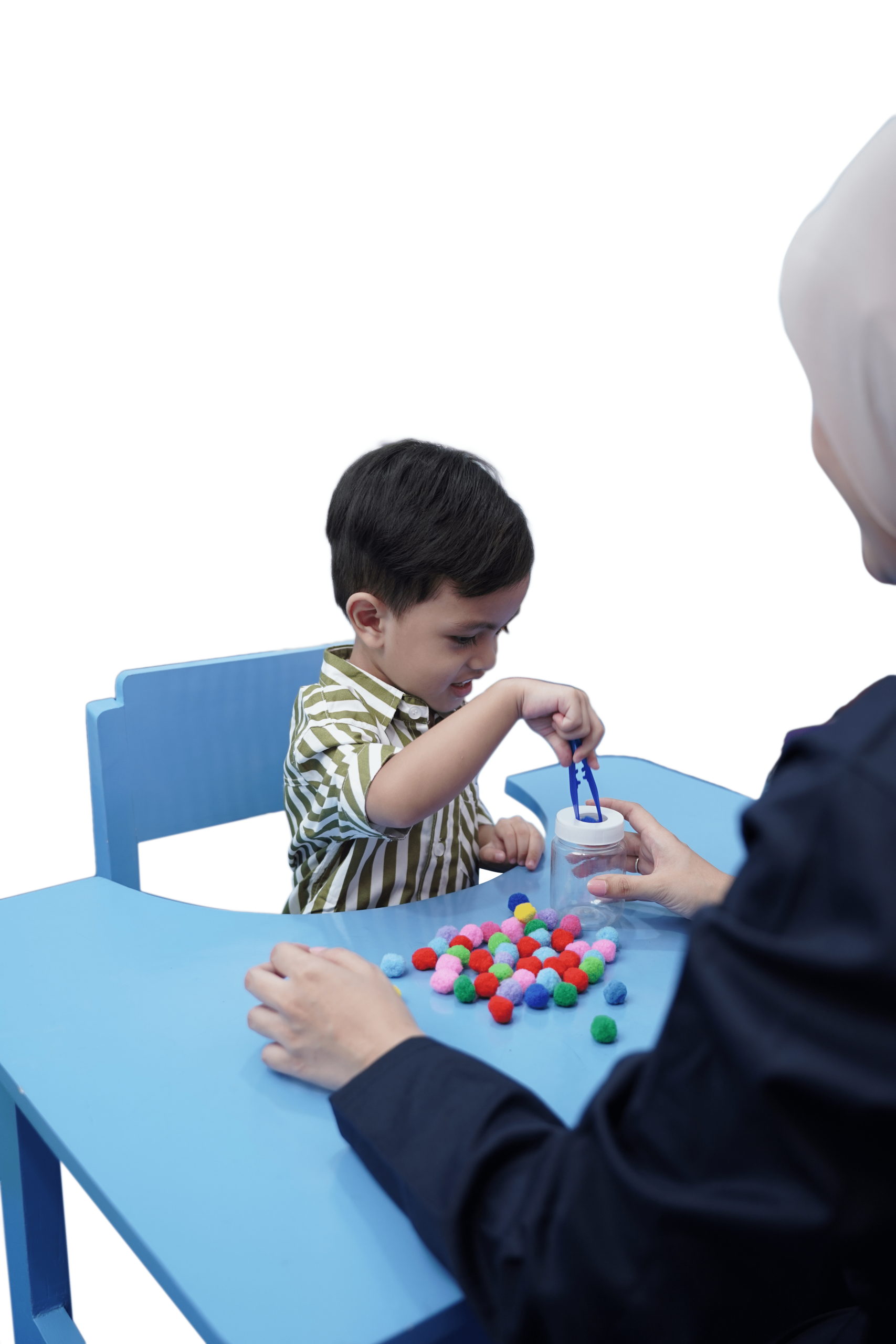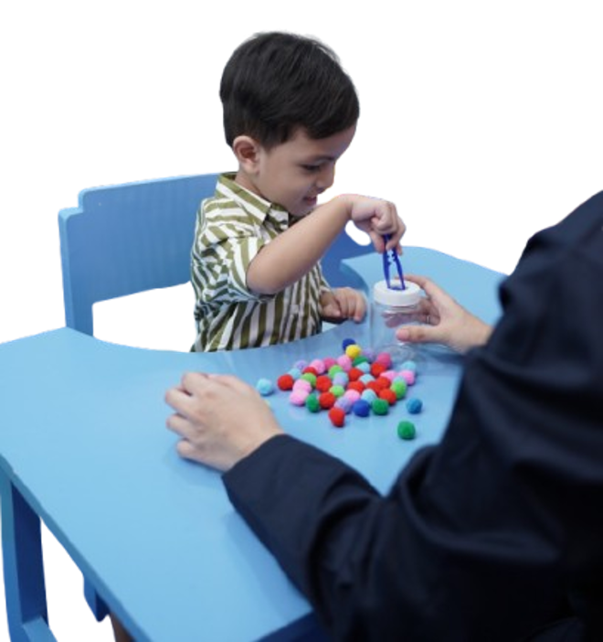 Pusat Terapi Bermain menyediakan fasilitas lengkap berupa ruang terapi individual yang nyaman, area bermain edukatif, evaluasi perkembangan harian, ruang tunggu ber-AC dengan Wi-Fi dan coffee corner, musholla, CCTV keamanan, serta tenaga terapis profesional di berbagai cabang seperti Kebagusan, Sawangan, Grand Depok City, Cibinong dan Karawaci.